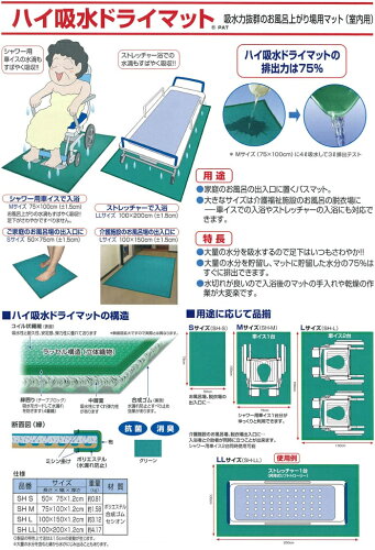 ハイ吸水ドライマット LLサイズお風呂上りの高吸水マット メーカー:シンエイテクノ 多く吸水してすばやく排出、乾燥すれば何度も使えます 商品の仕様 サイズ:幅100cm×長さ200cm(LLサイズ) カラー:グリーン 商品説明:シンエイテクノのハイ吸水ドライマットは、お風呂上がりの高吸水マット多く吸水してすばやく排出、乾燥すれば何度も使えます施設にも使える高品質 ※メーカー直送品は不良品・運送時破損を除き返品、交換ができません。