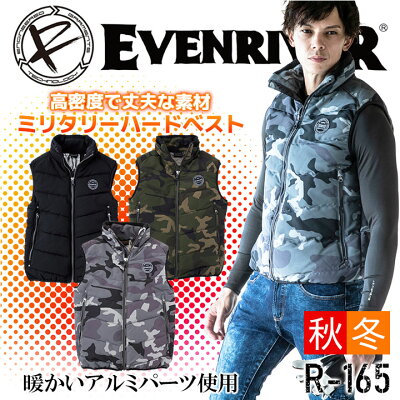 イーブンリバー R165 防寒ベスト 防寒着 ベスト 作業着 作業服 イーブンリバー防寒ベスト EVENRIVER 2019新商品 中綿入り 暖かい 迷彩柄 迷彩 アーミー柄 ミリタリー 冬用作業着 WINTER ミリタリーハードベスト 暖かい オシャレな