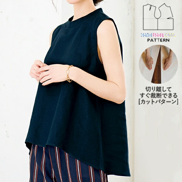 Aラインのノースリーブブラウスはマニッシュな雰囲気に仕上げています。