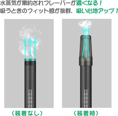 優れた設計でマウスピースを付けることで吸い心地UP!UP!弊社独自:口にピッタリの凹凸、横長の吸い口、円形の蒸気の通り穴。