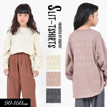 <50%OFF>2020秋冬【undeny./アンディニー】ロゴ サイドスリット ロングTシャツ≪S(90-100) M(110-120) L(130-140) XL(150-160)≫無地 子供服 キッズ 女の子 男の子 女児 男児 子ども ジュニア 長袖Tシャツ シンプル 無地