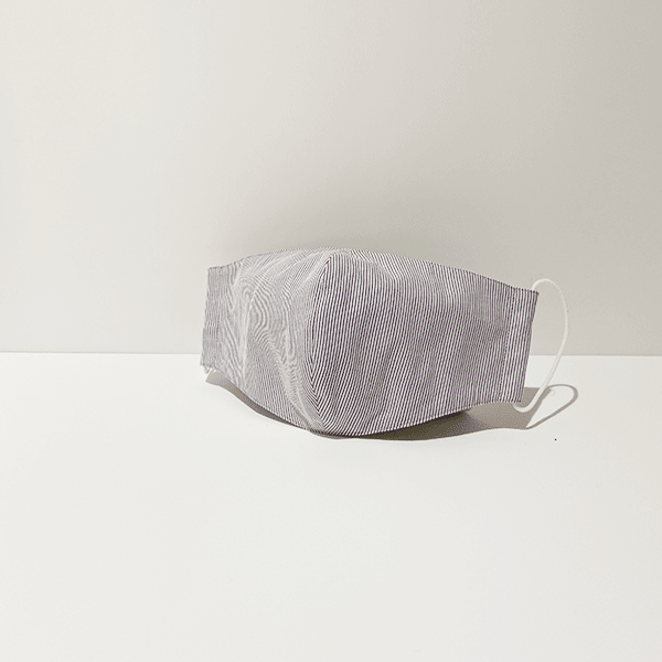 マスク 立体型2Lミドルキングサイズたっぷりサイズ男性にお薦め袷(二重)仕立【三角 ▽ ステッチ入り】グレーのコードレーン 布製 日本製