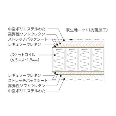 商品概要 SIMMONS Beautyrest Selection ビューティレストセレクション Mattress マットレス 6.5inch Golden Value Pillow Top 6.5インチ ゴールデンバリュー ピロートップ 高さ6.5インチ(約17cm)、コイル線径1.9mmのポケットコイルを使用。