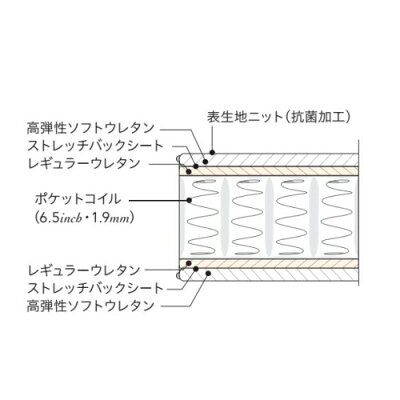 商品概要 SIMMONS Beautyrest Selection ビューティレストセレクション Mattress マットレス 6.5inch Golden Value 6.5インチ ゴールデンバリュー 高さ6.5インチ(約17cm)、コイル線径1.9mmのポケットコイルを使用。