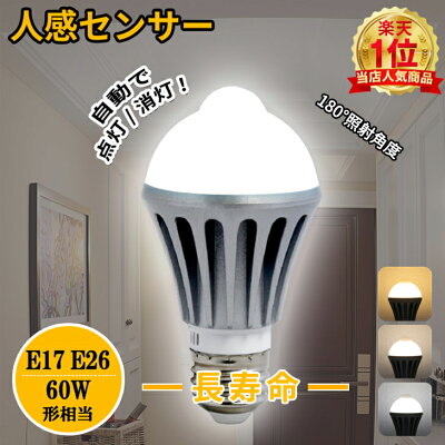 人感センサー 電球 led センサー 電球 人感 LED センサー ライト 人感センサー付きLED電球 LED電球 E26 E17 60W形 led電球 自動点灯/消灯 照明 節電 高輝度長寿命 天井 廊下 階段 トイレ玄関 脱衣所 長寿命 節電 省エネ 便利(CH-NGB)