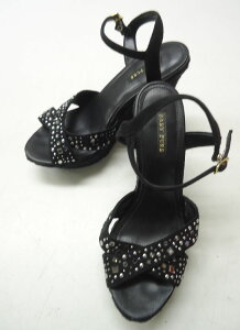 【中古】【BABY PURE/ベイビーピュア】ストーン付 厚底ストラップサンダル★M(23-23.5cm)/ヒール高:約11.5cm★ブラック★厚底でスタイルアップ効果も期待!