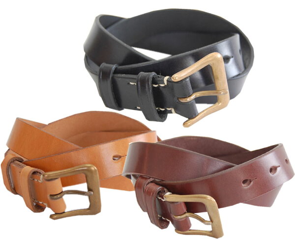 真鍮のバックルに30ミリ幅の細さ、ビィンテージベルトにも在る作りで、お値段も手ごろです。