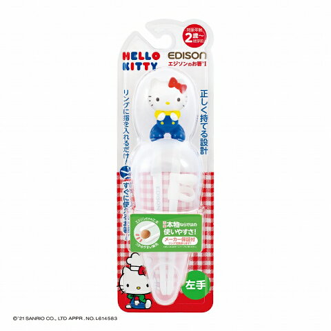 ★送料無料★左利き応援グッズ エジソンのお箸1 【左手用】 スタンダードカラー エジソンのお箸ハローキティ 専用ケース付 トレーニング箸 カトラリー しつけ箸 すぐに正しく使えるお箸 エジソン箸 リングに指を入れるだけ