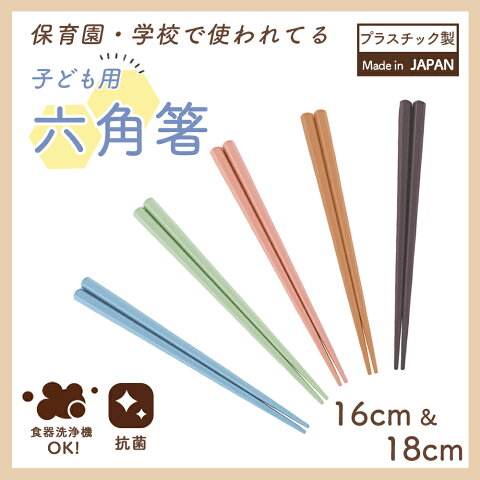 箸 六角箸 子ども用箸 持ちやすい 耐熱 食器洗浄機対応 メール便 先端が四角 先が細い 掴みやすい 日本製 使いやすい 軽い 三点持ち 練習 保育園で使用 洗いやすい カトラリー 三角持ち 16cm 18cm 子ども 子供 キッズ 離乳食 おしゃれ かわいい 安全性 樹脂 衛生的 耐久性