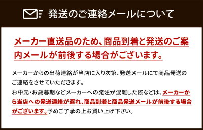 ※メーカーからの出荷連絡が当店に入り次第、発送確認のメールを送信いたしますため、商品発送とメールが前後する場合がございます。